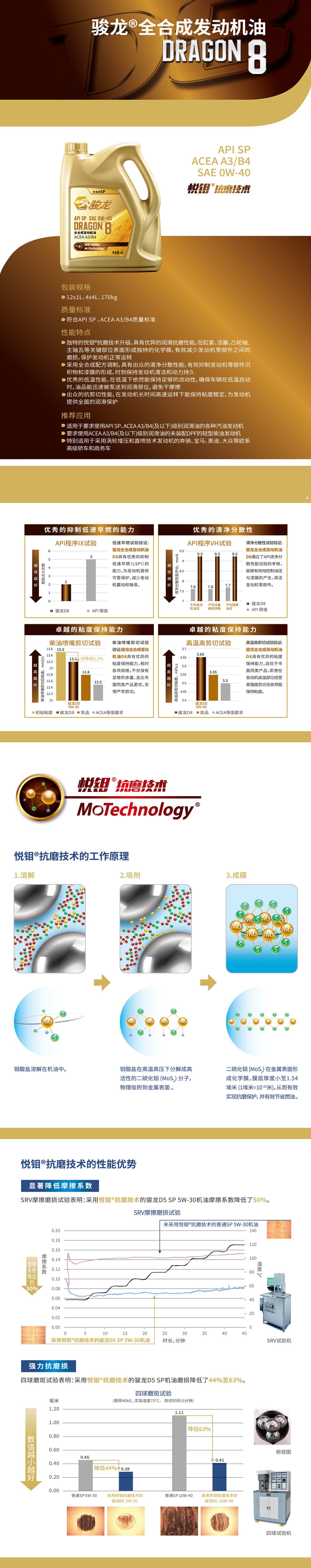 ● 适用于要求使用API SP、ACEA A3/B4(及以下)级别润滑油的各种汽油发动机 ● 要求使用ACEA A3/B4(及以下)级别润滑油的未装配DPF的轻型柴油发动机 ● 特别适用于采用涡轮增压和直喷技术发动机的奔驰、宝马、奥迪、大众等欧系高级轿车和商务车